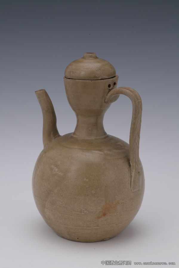 这把摆在面前的壶,我一直找不到合适的名称。虽然它已经有一个通用的官方名字:五代青釉杯口执壶。用杯口两字来概括此壶的特点,我认为是经验性的无趣,的确,它的口部形如杯子,但却不是常见的的杯子,我看过后的第一印象是——标准葫芦型的执壶。葫芦有着不倒的造型,它结的子多,那是吉祥,为什么中国的仙人们总要腰间挂个葫芦呢?上面是圆的盖,下面是圆的腹,颈项收缩联系上下两个圆,生动的把两个圆激活,花好月圆、圆圆满满就是它的寓意吧。更为奇怪的是,那杯形口后面把柄上方的两个小孔,有人问做什么用,难道是煮酒论英雄时温酒的出气口?喝着黄酒,让微微的酒香溢出,空气中散发着迷离的酒分子,一下子对话也显得温馨而有趣起来。是啊,这个壶完完全全是一个精心之作,一千多年后,再也找不到一个相同的壶了,显得稀罕而个性。更为有趣的是,如果放置在时空文章来源华夏酒报的长河里,它恰恰介于唐宋之间,细细地比对一下,你会恍然大悟,这壶处于两个最有特色的朝代中间,确保唐人丰腴美态的遗风,又打开宋代对曲线条的痴迷,它承上启下,没有个性还真不行!