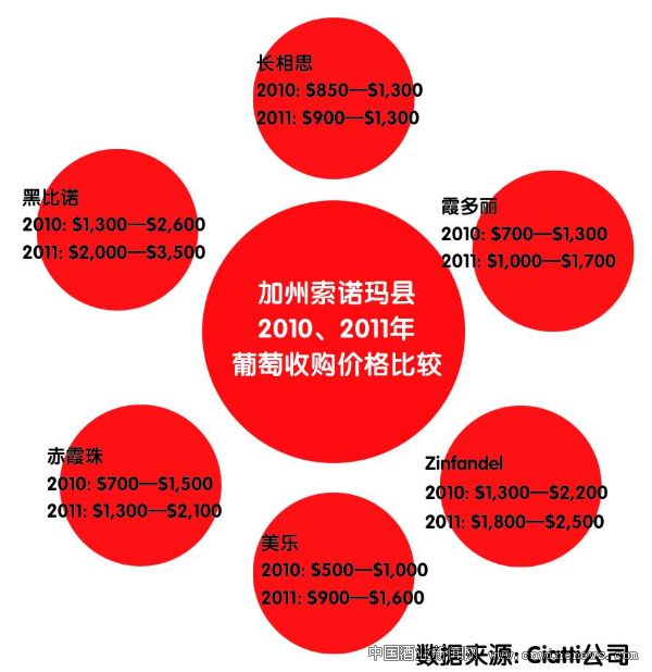 葡萄酒与葡萄中介商Ciatti公司预计,加州索诺玛县的葡萄收购价格将出现上升。“市场情况明显好转,种植商们会发现这个行业仍然非常有利可图。”Ciatti公司位于Santa Rosa的合作伙伴称。
