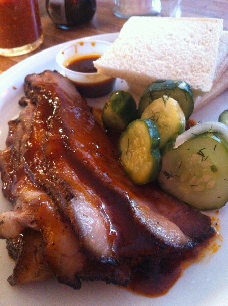 I love what Danny Bowien does at Mission Chinese Foods. A few months ago he turned his dumpling station into a barbecue stand, and I finally was able to drop in and try it. If I closed my eyes and tasted his fatty, succulent slices of brisket I’m not sure I’d know I was in a Chinese restaurant; I’d think I was back in Texas, but when something is this good, why quibble. Besides, it’s served with his version of pickled vegetables and white bread, crust removed, of course. However, if you want to try it, you’ll have to wait. The staff is traveling in China, and the restaurant is closed until at least June 24.