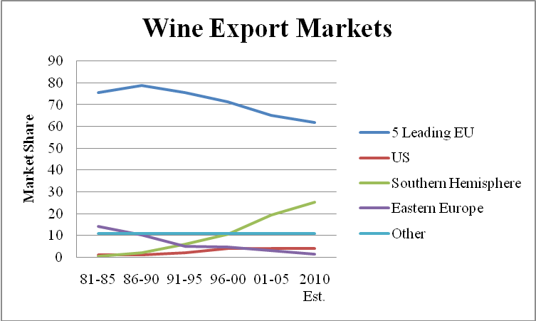 Source: Shari Kosco, “Wine: World Markets and Trade”, various reports, US. Dept. of Agriculture, Foreign Agriculture Service, and author’s estimates.