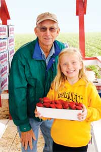 San Diego County farm manager Pete Makauf greets a U-pick customer at his strawberry stand. He usually plants 60 acres of strawberries at the Carlsbad farm but this year, with the cost of water, he planted only 40 acres.