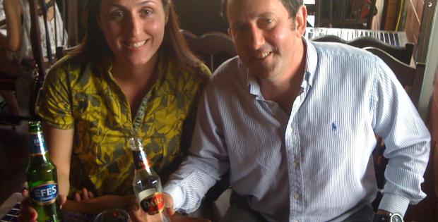 Efes importer Yener Ciprut enjoys a bottle of beer with his wife. Photo by Erin Millar.