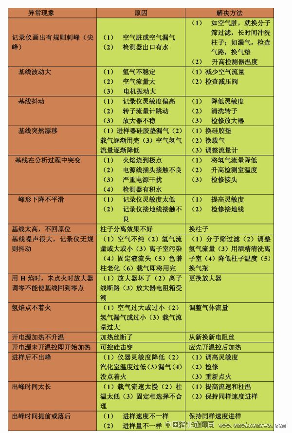 气相色谱仪分析中常出现异常情况及解决办法