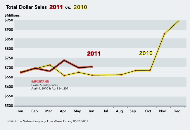Wine sales had good growth in most price points. Most of the growth took place in the over-$20 segment. In the 4 weeks ending June 25, sales for over-$20 wines were up 18.5 percent in sales and up 22.5 percent in volume.
