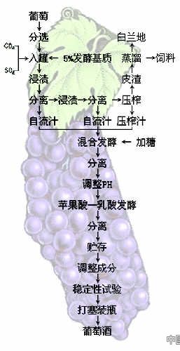 存在于CO2气体中的整粒葡萄,进行细胞内发酵;破碎浆果释放的果汁,进行有酵母引起的酒精发酵;存在于果汁中的整粒葡萄、果梗和果皮、种子等。
