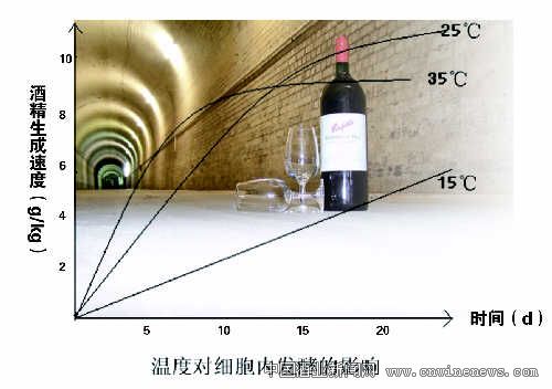 细胞内发酵形成的酒精量较少,酒精量含量一般为0.44%—2.50%。在细胞内发酵过程中,酒精是逐渐产生的,且酒精含量取决于温度条件。温度较低,酒精生成的速度较慢,但酒精生成的总量会较高。