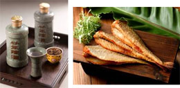 Huadiao, a sweet fragrant yellow wine; specialty of Shaoxing fermented from glutinous rice and wheat, has more moderate alcohol content of 15-16%. It is often served warm, like sake – making it an ideal complement to crab, which is cool in nature, while enhancing the flavour of famous dishes such as wine-marinated huadiao chicken.