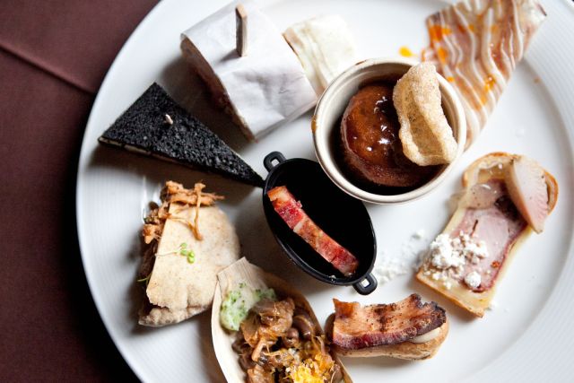 Bacon-in-the-batter waffles, maple gelato, bacon fat toffee salted caramel ice cream sandwich + chicharones are on the menu. And that's only from Duskie Estes (Zazu, SF). We like the sound of Fatty Filled Pastry Ham-Burgers and thyme Griebenschmaltz with lard crackers ourselves.