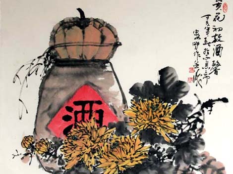 It had been popular in China to brew chrysanthemum wine as early as the Han and Wei Dynasties. Drinking Chrysanthemum wine later became a folk custom, especially during the Double Ninth Festival. In the bygone days, chrysanthemum wine was brewed on the Double Ninth Festival for the next year. On that very day, people picked chrysanthemum that had just blossomed and some green leaves just had come out, mixed them with grains for the brewing, and then put the mixture aside until the next Double Ninth Festival. It is said that people drinking the wine can prolong their life. On the Double Ninth Festival, besides ascending heights and wearing dogwood branches, people usually drank chrysanthemum wine with their friends and relatives while appreciating chrysanthemums. In particular, poets would improvise and chant poems when enjoyed the flowers and drank the wine, and they left behind a lot of beautiful lines for later generations.
