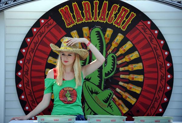 An attendant prepares entertainments for festival goers at the festival garden in Istanbul, Turkey, on July 2, 2011. The two-day open-air Efes Pilsen One Love Festival started on Saturday in Istanbul. (Xinhua/Ma yan)