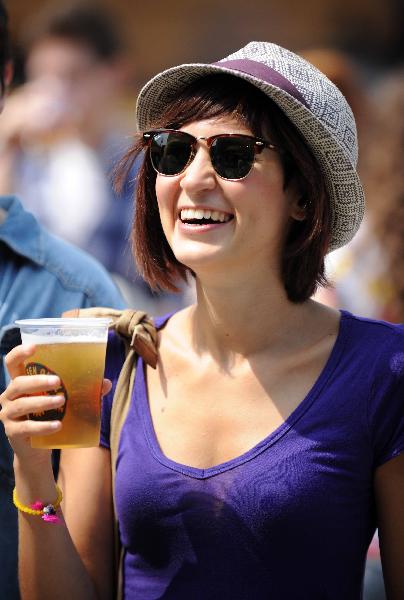 An girl drinks beer at the festival garden in Istanbul, Turkey, on July 2, 2011. The two-day open-air Efes Pilsen One Love Festival started on Saturday in Istanbul. (Xinhua/Ma yan)