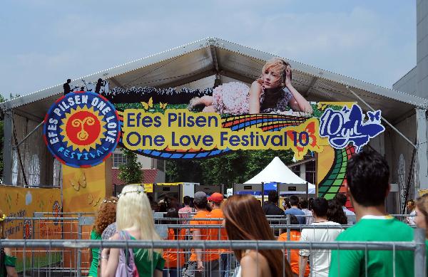 Festival goers enter the festival garden in Istanbul, Turkey, on July 2, 2011. The two-day open-air Efes Pilsen One Love Festival started on Saturday in Istanbul. (Xinhua/Ma yan)