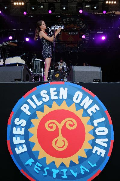 A member of "123" band performs at the festival garden in Istanbul, Turkey, on July 2, 2011. The two-day open-air Efes Pilsen One Love Festival started on Saturday in Istanbul. (Xinhua/Ma yan)