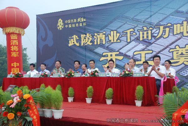 6月28日,武陵酒业千亩万吨酱酒生态园一期工程开工奠基仪式在湖南常德经济技术开发区举行。中国食品工业协会领导、湖南省及常德市政府领导、泸州老窖集团公司领导、联想控股有限公司领导以及湖南武陵酒有限公司武陵酒主力经销商近200人参加了本次开工奠基仪式。