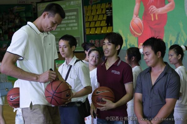青岛啤酒股份有限公司营销总裁王瑞永与易建联互赠礼物