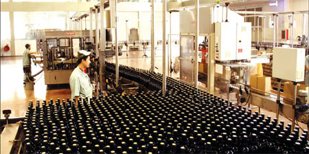 Changyu's modern and busy wine bottling line at Yantai. Ju Chuanjiang / China Daily