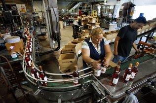 Bicky Almaraz, left, and Christian Ibarra fill boxes at the Murphys vintner, owned by Joan Kautz and her family. About 10 percent of the company's exports go to China.