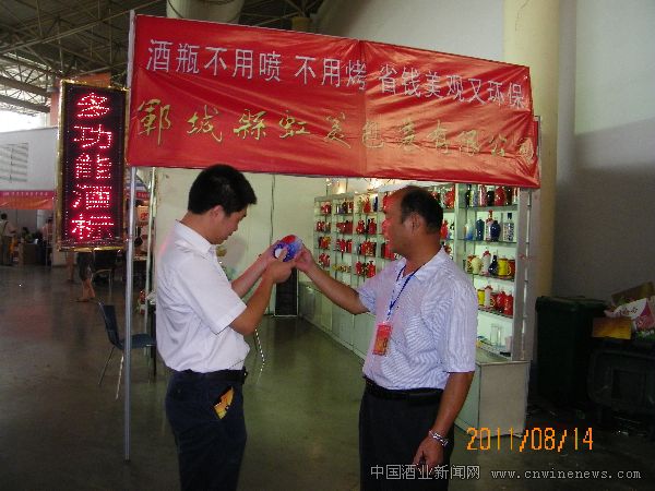 自2010年以来,作为填补行业空白的热收缩商标运用到了白酒包装上。山东省郓城县虹美包装有限公司的热收缩标广受欢迎,该产品得到了国内众多白酒生产企业的青睐。公司经理李广德向《华夏酒报》记者表示,在秋季山东糖酒会上,公司与很多企业达成了合作协议。 【本报记者/卞川泽 摄】