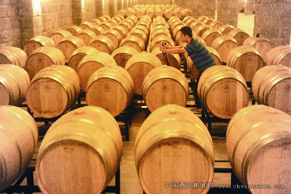 8月15日,一位工作人员在戎子酒庄地下酒窖内搬运储酒用的橡木桶。 位于山西省临汾市乡宁县的戎子酒庄建成刚刚两年,葡萄酒的最大产能已达每年5000吨。酒庄的老板张文泉曾是乡宁当地的“文章来源华夏酒报煤老板”,资产总值近20个亿。谈起靠煤发家致富后为何要建葡萄酒庄,张文泉说:“煤炭企业的生存、发展受制于资源总量的减少和传统工业经济结构的调整,乡宁的地理、土壤条件适合种植葡萄,而且投资葡萄酒庄,以工业反哺农业,也是调整经济结构的好途径。”