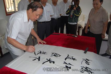 酿酒大师、书法家赖登燡挥毫书就“德行天下 地道原浆”