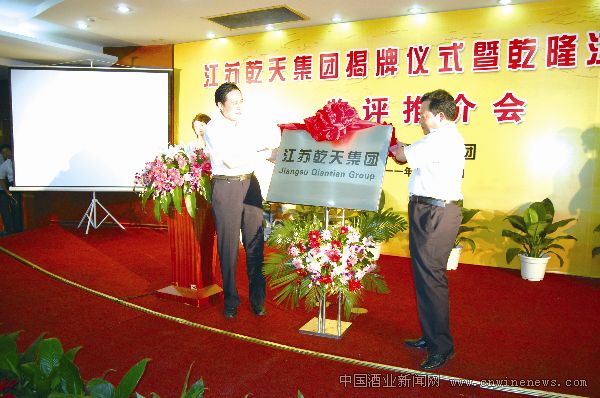 宿迁市副市长许步健、宿城区委书记李健共同为乾天集团揭牌并希望乾天集团继续创新管理方式,壮大企业实力,实施名牌战略,扩大市场营销,以特色求发展,以信誉闯市场,做大做强“乾隆江南”等系列品牌,为振兴苏酒、壮大地方经济发展发挥更大的带动作用。