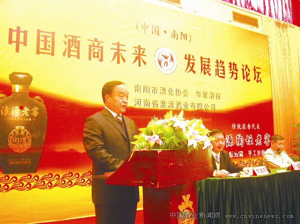 河南省淮源酒业有限公司张建民在“中国酒商未来发展趋势论坛”上讲话。