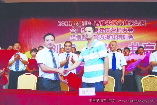 8月23日—25日,以“创新、合作、共赢”为主题的“2011胜景山河品牌发展高峰论坛暨全国经销商年度营销大会、经销商竞争力提升培训会”在湖南岳阳举行。中国酿酒工业协会黄酒分会、江南文章来源华夏酒报大学有关领导、专家,经销商代表300余人参加了会议。