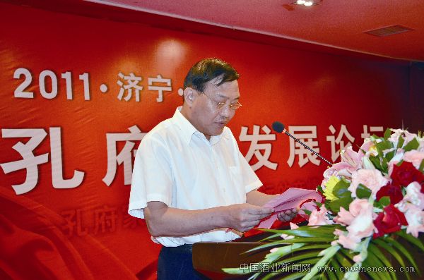 曲阜孔府家酒业有限公司董事长邱振新在论坛上讲话。