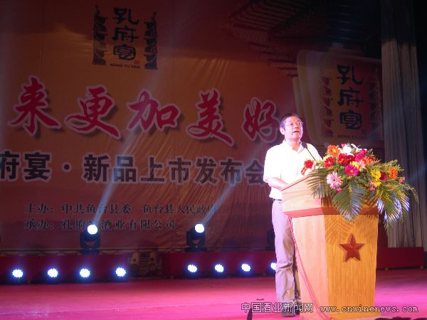新产品、新形象、新起点、新跨越。此次新品孔府宴酒闪亮登场,预示着昔日标王欲重振雄风,再创辉煌。今年初,上海凯利投资有限公司入主山东孔府宴酒业后,立即展开全面启动工作,并经国家工商总局核准,更名注册了“孔府宴酒业有限公司”,重新亮相于世人面前。由此,孔府宴重获新生,迈入了新的发展时期。图为凯利公司董事长王洪斌在发布会上致辞。