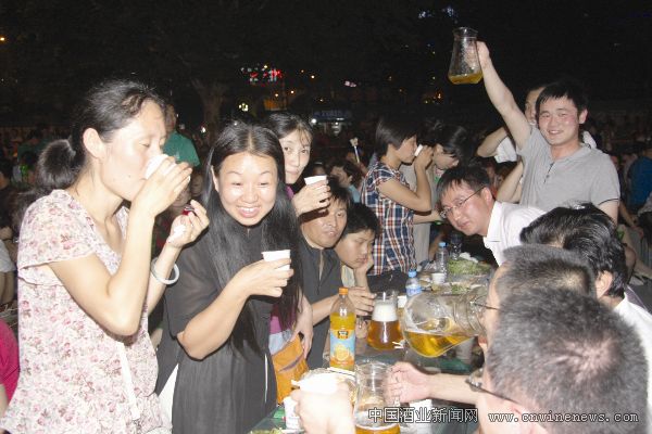 每天5000人啤酒节上释放激情 7月31日,记者来到烟台啤酒节的主会场——烟台工人文化广场,已有百十余位消费者找好了位置,边品酒边聊天,只待晚上的节目开始。消费者刘先生兴奋之情溢于言表:“啤酒节办得太棒了!有酒喝,有美食,还有精彩的节目,谁都能参加,这就是我们老百姓自己的节日啊!”