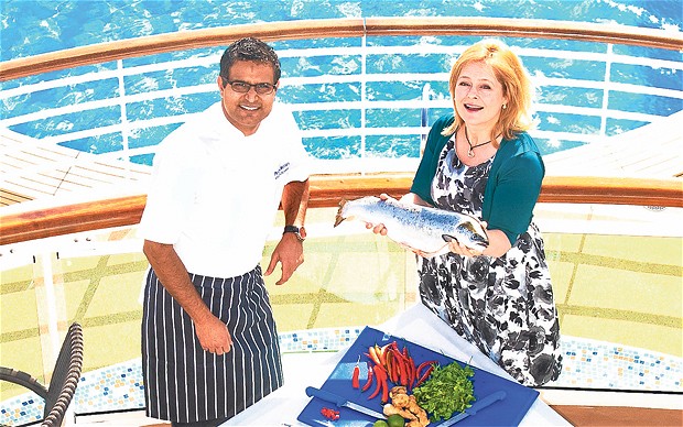 Cruise food has a particular fascination for me. When I was a child (not quite half a century ago, thank you) Blue Peter showed a behind-the-scenes glimpse of the huge storerooms, armies of chefs and massive tins of caviar on the QE2. I was entranced by the description of a miniature, floating universe where passengers could order steak every night if they wished, and food (including puddings) was available around the clock.