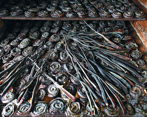 Snake carcasses are left to air-dry so they can be made into medicines. [Photos by Aly Song / Reuters]