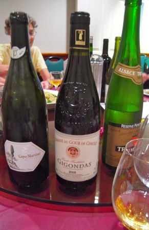 The group brought nine bottles of wine, including older vintages. A mistake, perhaps, since three were DOA: 2002 Jet et Gilles Lafouge Meursault, a white Burgundy; Jerman Capa Martino, 2001 a Friulian white blend, and a Bouchard Aine Pouilly-Fuisse 2008.