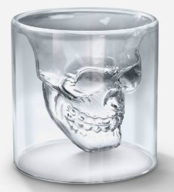 玻璃材质的酒杯,里面是内嵌的骷髅头造型,饮之如