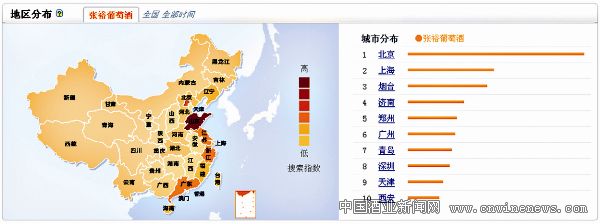 张裕和长城的用户关注度最高点都出现在2010年末,王朝的用户关注度从2010年第四季度开始持续攀升,至目前达到最高点。这证明王朝从2010年下半年逐步增强的市场推广和网络营销力度,在消费者中已经产生影响。