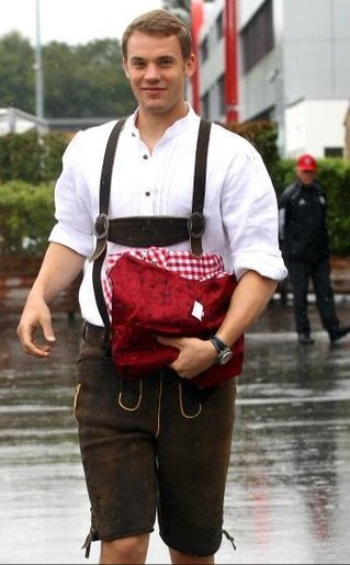 9月17日,一年一度的慕尼黑啤酒节盛大开幕。第二天,拜仁就在客场2比0轻取沙尔克04。拜仁凯旋而归,众将心情愉快的穿上巴伐利亚州传统服装为球队赞助商拍摄啤酒节宣传广告。因为这是球队每年的必修课,所以换装的老队员远没有穿上皮裤正式亮相的新援诺伊尔那么抢眼。