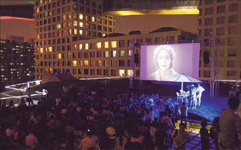 Film fans watch the German silent movie Metropolis on the rooftop garden of a building in Beijing. Jiang Dong / China Daily