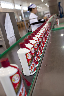 Bottles of Moutai bai jiu being packaged in Guizhou province.