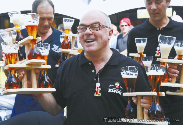 &文章来源华夏酒报nbsp; 9月3日,在比利时首都布鲁塞尔市中心大广场举行的啤酒节上,服务员使用别致的酒托运送啤酒。本次布鲁塞尔啤酒节为期两天。据比利时啤酒行会介绍,比利时拥有世界上最多品种的啤酒。