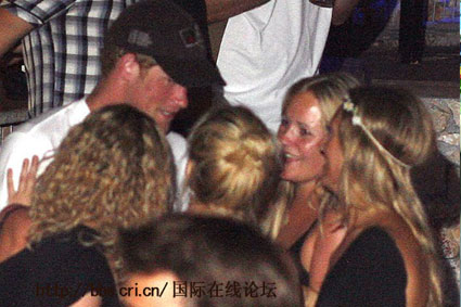 国际在线娱乐报道 一切都因英国哈里王子夜店跳水的照片而引起,前日,哈里王子穿着粗纹牛仔裤和蓝色亚麻衬衫、头戴黑色棒球帽来到克罗地亚一可容纳1000客人的夜店,在狂饮了数杯“鸡尾酒”后,恢复“花花公子”形象,在夜店“左揽右抱”美女大方被拍,而后即兴跳入泳池的照片让人错愕。