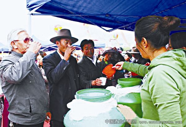 萨市城关区举行第六届嘎吉林青稞酒大赛,旨在拓展拉萨城区旅游、文化发展空间,精心打造拉萨文化品牌。图为消费者在大赛现场品酒。