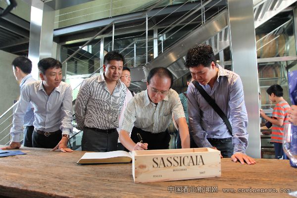 临行前,Nicolo庄主向丁伟大使及周韵琪总领事分别赠送了一瓶带其当场签名留念的1500毫升的限量版SASSICAIA。在其重要客人的留言本上,丁伟大使写下了“追求品质,创造卓越!”;周韵琪总领事则签下了“优良品味,走向世界!”并共同祝愿SASSICAIA酒园与浩奈酒业的合作更上一层楼!