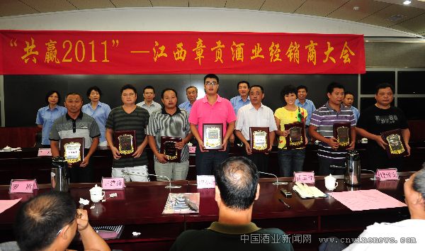 会上,江西章贡酒业向50多位经销商进行了表彰。