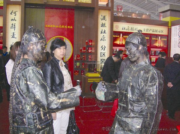 在今年的沈阳秋季全国糖酒会上,洛阳杜康控股展台前的行为艺术表演吸引了不少与会者的