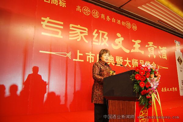 此次推出的专家级文王贡酒为38°、39°和40.8°,首开徽酒低度先河,众多与会嘉宾认为文王贡酒的新品迎合了消费者的消费趋势,定位准确,将引领徽酒的新一轮消费潮流。安徽文王集团董事长刘素敏认为,专家级文王贡酒的推出,破解了白酒界的“两大难题”:低而不淡,浓而不艳,“代表了一种新口感和新风尚”。