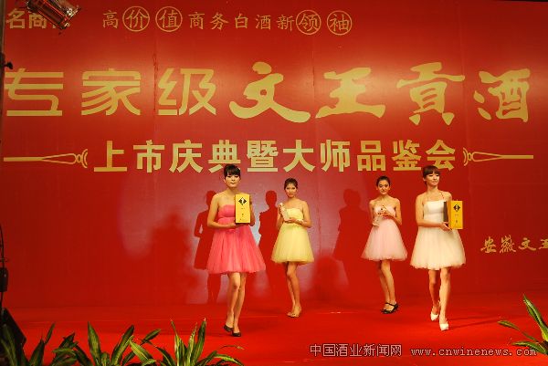 文王贡酒素以质量取胜,此次推出2011扛鼎之作——专家级文王贡酒,一问世就备受关注。专家级文王贡,经239道手工工序,众多专家层层精炼,岁月典藏,再树徽酒品质新标杆,同时融入时尚、健康、商务新元素,旨在打造高价值商务白酒新领袖。