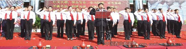 孔府家总经理李建国带领孔府家方队宣读《儒雅香孔府家酒品质宣言》