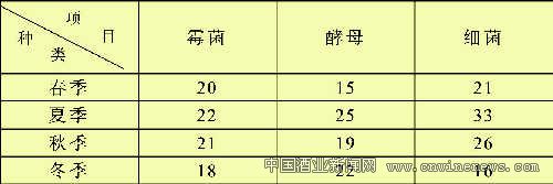 酿酒车间5样静置微生物统计(3分钟)