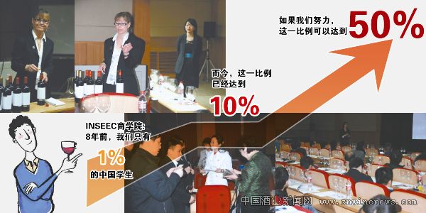 “8年前,我们只有1%的学生是中国人,而今,这一比例已经达到10%。如果我们努力,这一比例可以达到50%。”INSEEC商学院发言人Claire Dawson说。该学院同样在设法增加中国生源。Dawson表示,中国未来的葡萄酒专业人士,无论是侍酒师还是从事葡萄酒贸易者,均对这一专业非常感兴趣,此外,通过在这里的学习,还可与波尔多葡萄酒行业建立一定的联系。