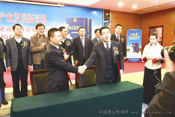 10月21日,“共创长吉图区域白酒产业发展新商机——吉林粮食集团酿酒有限公司与延边州国贸集团公司战略合作签约仪式”在长春举行,标志着吉粮集团酿酒公司省内扩张战略迈出实质性步伐。